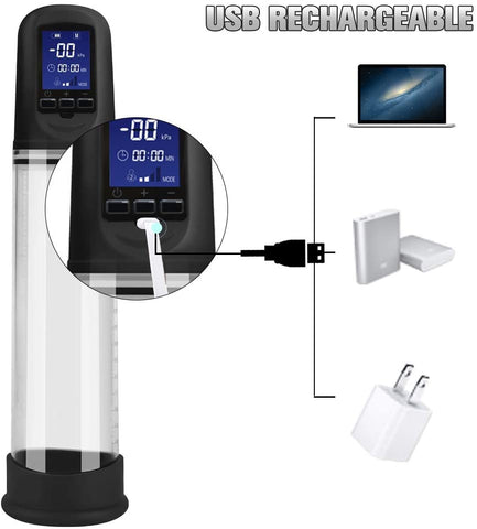 2.0 upgraded penis pump designed with LCD, displays the mode, time, kPa, and battery, making operation become easier. If you feel uncomfortable, an instant pressure release button will protect your penis from getting hurt.